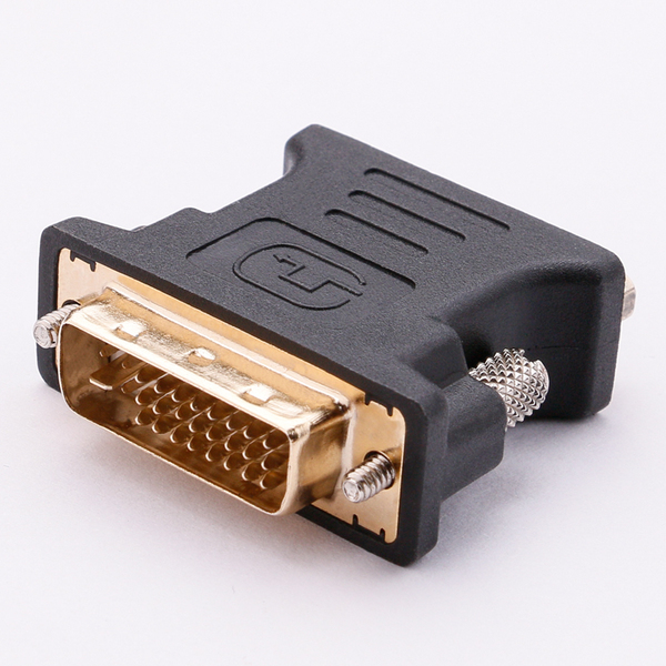 DVI-Integrated(DVI-I)接口(18+5和24+5)是兼容数字和模拟接口的,所以,DVI-I的插座就有18个或24个数字插针的插孔+5个模拟插针的插孔(就是旁边那个四针孔和一个十字花)。比DVI-D多出来的4根线用于兼容传统VGA模拟信号。基于这样的结构,DVI-I插座可以插DVI-I和DVI-D的插头,而DVI-D插座只能插DVI-D的插头。DVI-I兼容模拟接口并不意味着模拟信号的接口D-Sub插头可以直接连接在DVI-I插座上,它必须通过一个转换接头才能连接使用。一般采用这种接口的显卡都会带有相关的转换接头。考虑到兼容性问题,目前显卡一般会采用DVI-I接口,这样可以通过转换接头连接到普通的VGA接口。而带有两个DVI接口的显示器一般使用DVI-D类型。而带有一个DVI接口和一个VGA接口的显示器,DVI接口一般使用带有模拟信号的DVI-I接口。